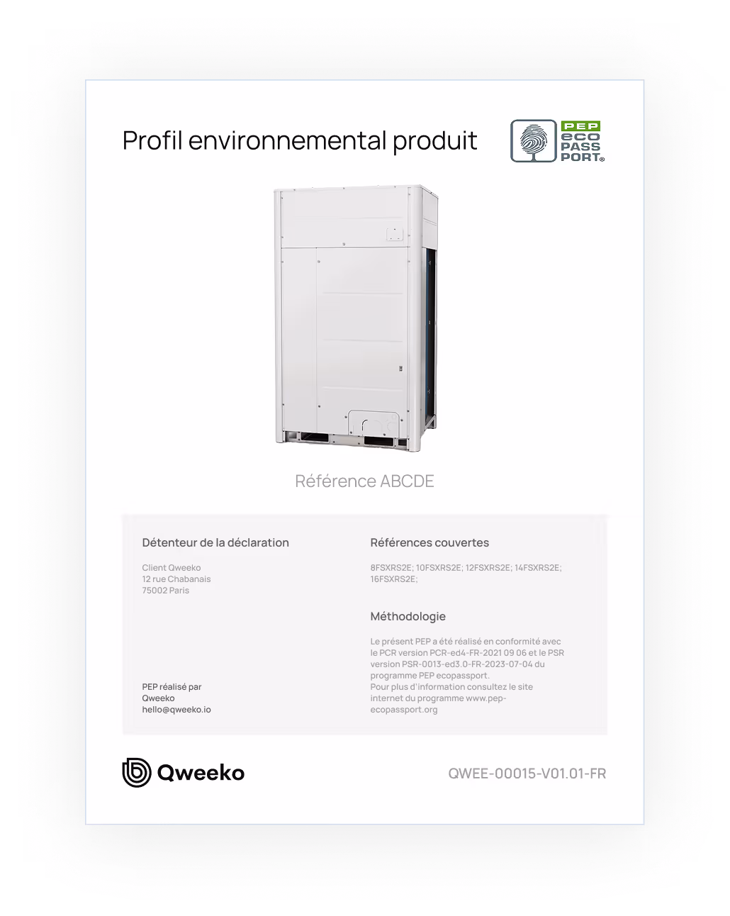 fiche PEP, rapport ACV, bilan carbone. Conformes aux exigences RE2020, EPD, etc.